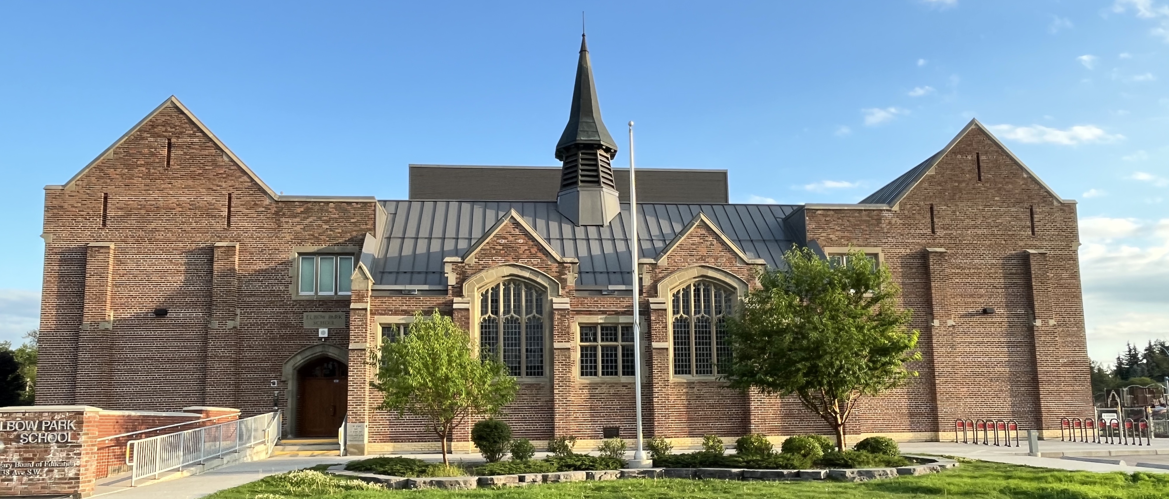 Enjoy the canopy of mature American Elm trees until 8th Street. These trees were planted by William Reader. To learn more about the city’s most influential Parks Superintendent, read our post on Reader Rock Garden. When the road bends, turn left and cross the bridge. Here you will discover an urban area of interest: Elbow Park School.