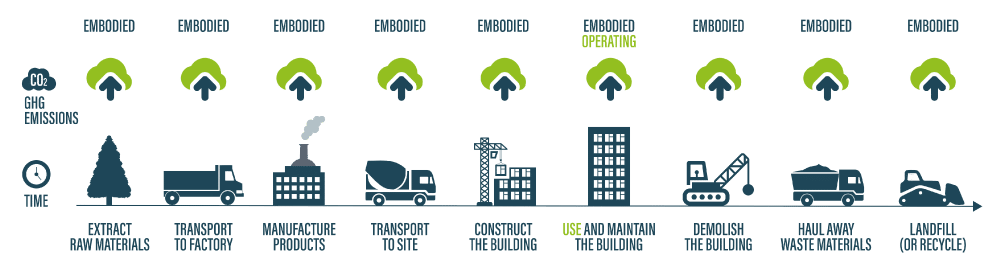 - Embodied Carbon: The monetized value of a building’s carbon footprint measured in tonnes of greenhouse gas (GHG).
