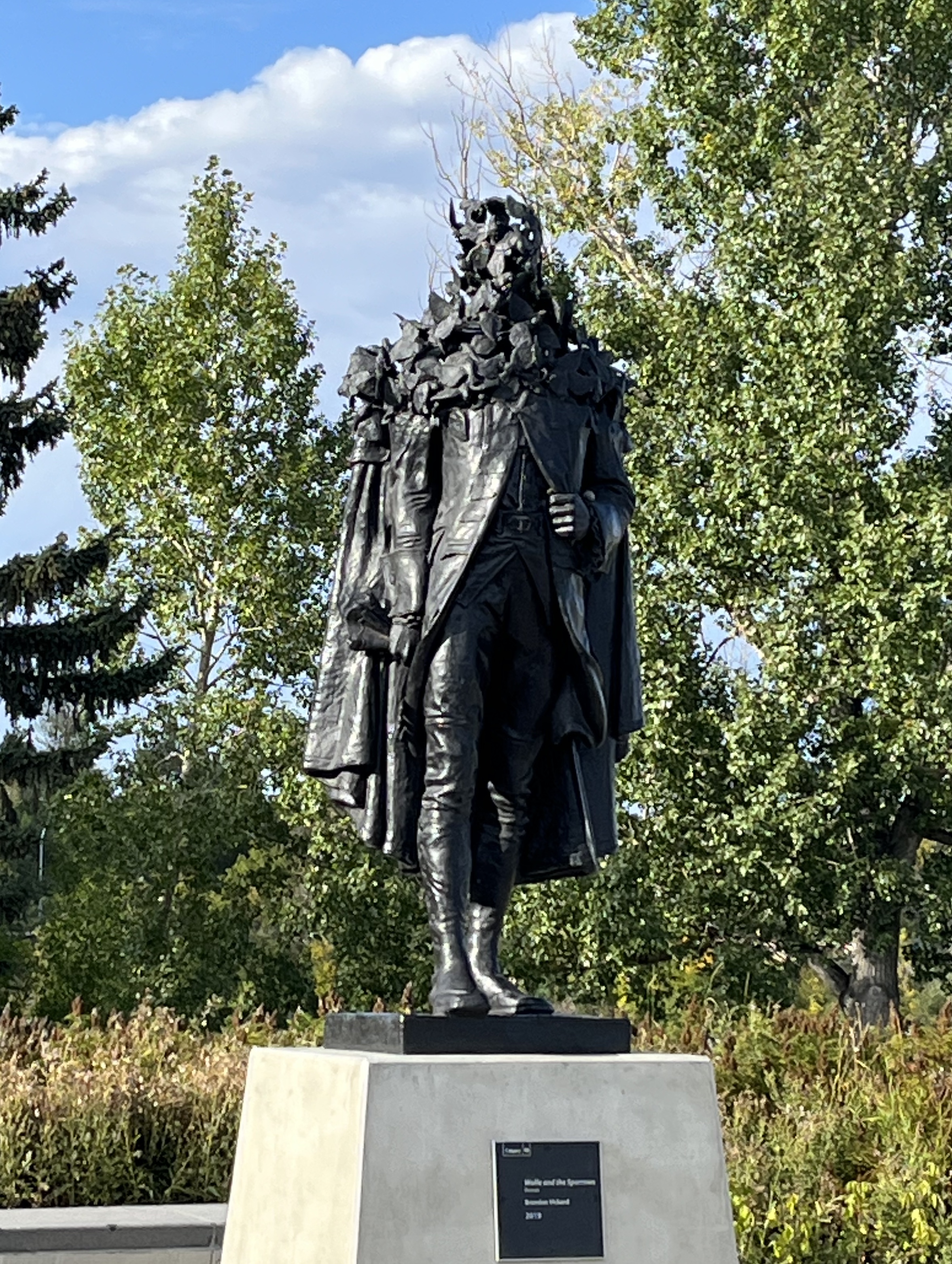 At the gateway to Inglewood stands a public art installation. You will find it on the southwest corner of 12th Street Bridge. Artist Brandon Vickerd created it in 2019. The piece takes inspiration from a bronze monument by John Massey Rhind (1898). Located in South Mount Royal Park, the original was a gift to The City, from Glenbow founder Eric Harvie. Both pieces depict British Army General James Wolfe, with Vickerds’ interpretation distorted by a flock of sparrows.