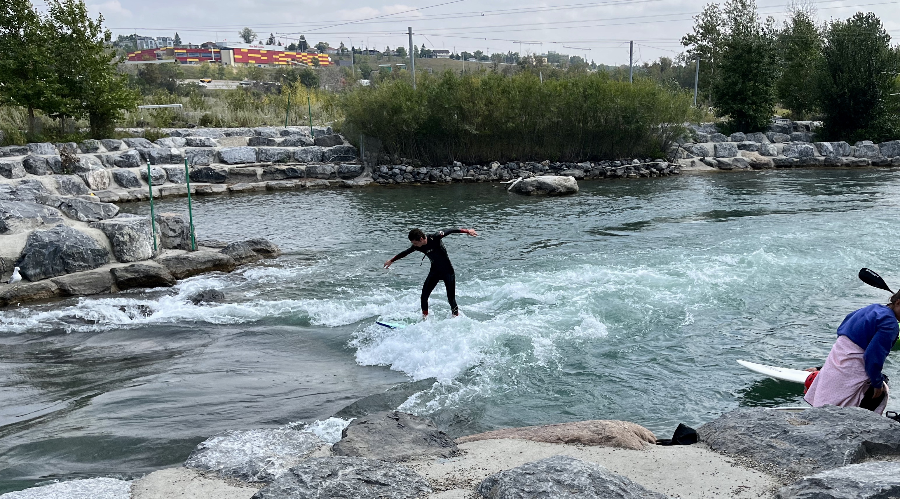 The park is next to and complemented by the Harvie Passage. Reconstructed in 2018, after an extensive post-flood rebuild, it improved safety and navigability around the Bow River weir.