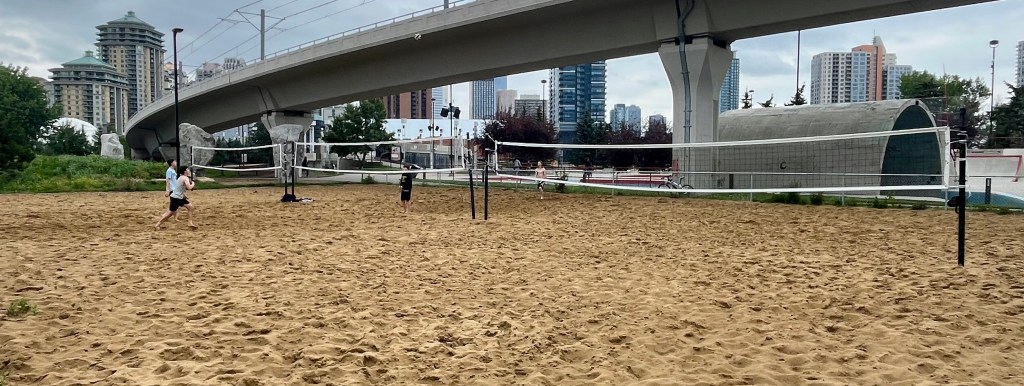 The site is home to the Calgary Beach Volleyball Association (CBVA). Their volunteers, volleyball enthusiasts and fans have built 19 outdoor sand courts.